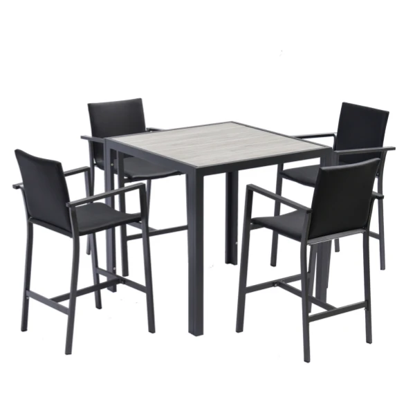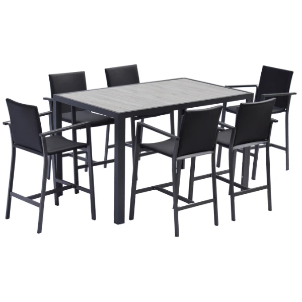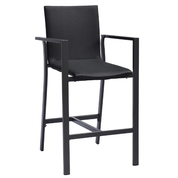 Deze barstoel is de perfecte aanvulling op bartafel Veere. Hoewel barsets voor de keuken en eetkamer de afgelopen decennia steeds populairder zijn geworden, weten maar weinig mensen van het bestaan van barsets voor buiten af. Toch heeft een barset voor buiten bepaalde voordelen ten opzichte van loungesets en gewone eettafels. Zo kan een barset veelzijdig gebruikt worden. Aan een bartafel kan je zitten, maar ook staan als je de stoelen aan de kant schuift. Handig, vooral wanneer je een buitenfeestje organiseert! Daarnaast werkt een barset sfeerverhogend en neemt een barset vaak minder plaats in. Deze barstoel is gemaakt uit aluminium en textileen. Dankzij de rugleuning en de voetsteun wordt je rug tijdens het zitten minimaal belast.