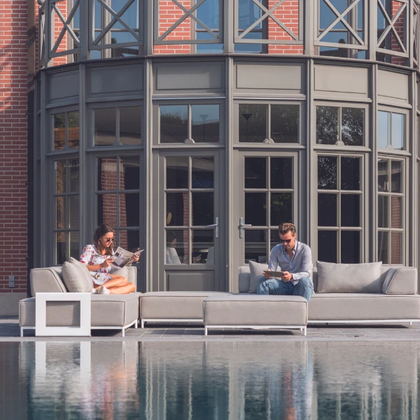 Dit strakke witte bijzettafeltje past perfect bij de loungeset Alejandra. Het tafeltje is gemaakt uit wit aluminium en meet 54cm breed, 25cm diep en 43cm hoog. Dankzij het slimme ontwerp schuif je dit tafeltje makkelijk over de loungezetel. Zo heb je jouw drankje, smartphone of favoriete lectuur meteen bij de hand. Ontdek al onze tuinmeubels op onze website.
