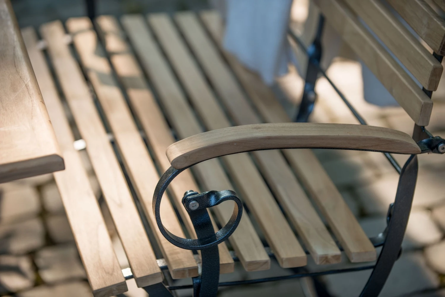 Opklapbare tuinbank Beline, gemaakt uit massief teakhout.Â