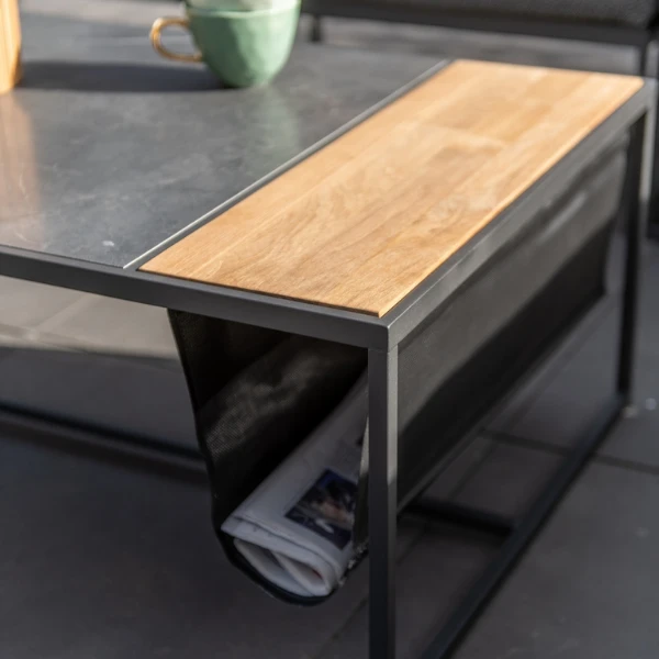 Salontafel Voor Buiten Atol 122x62cm Rvs, Keramiek En Teak – Antraciet