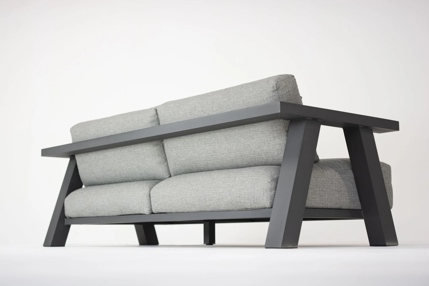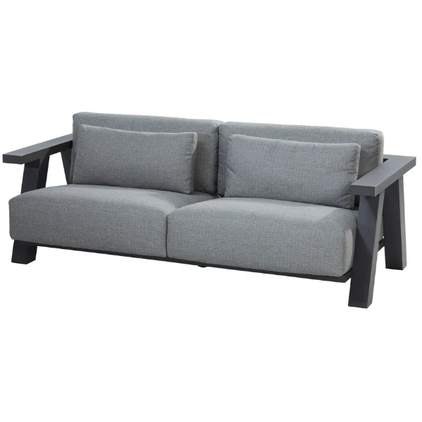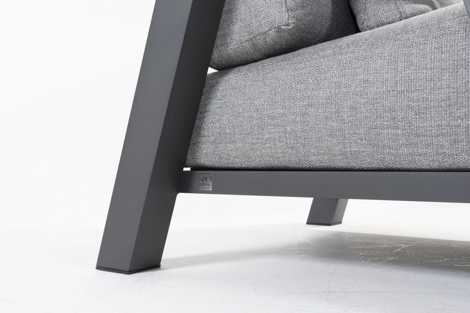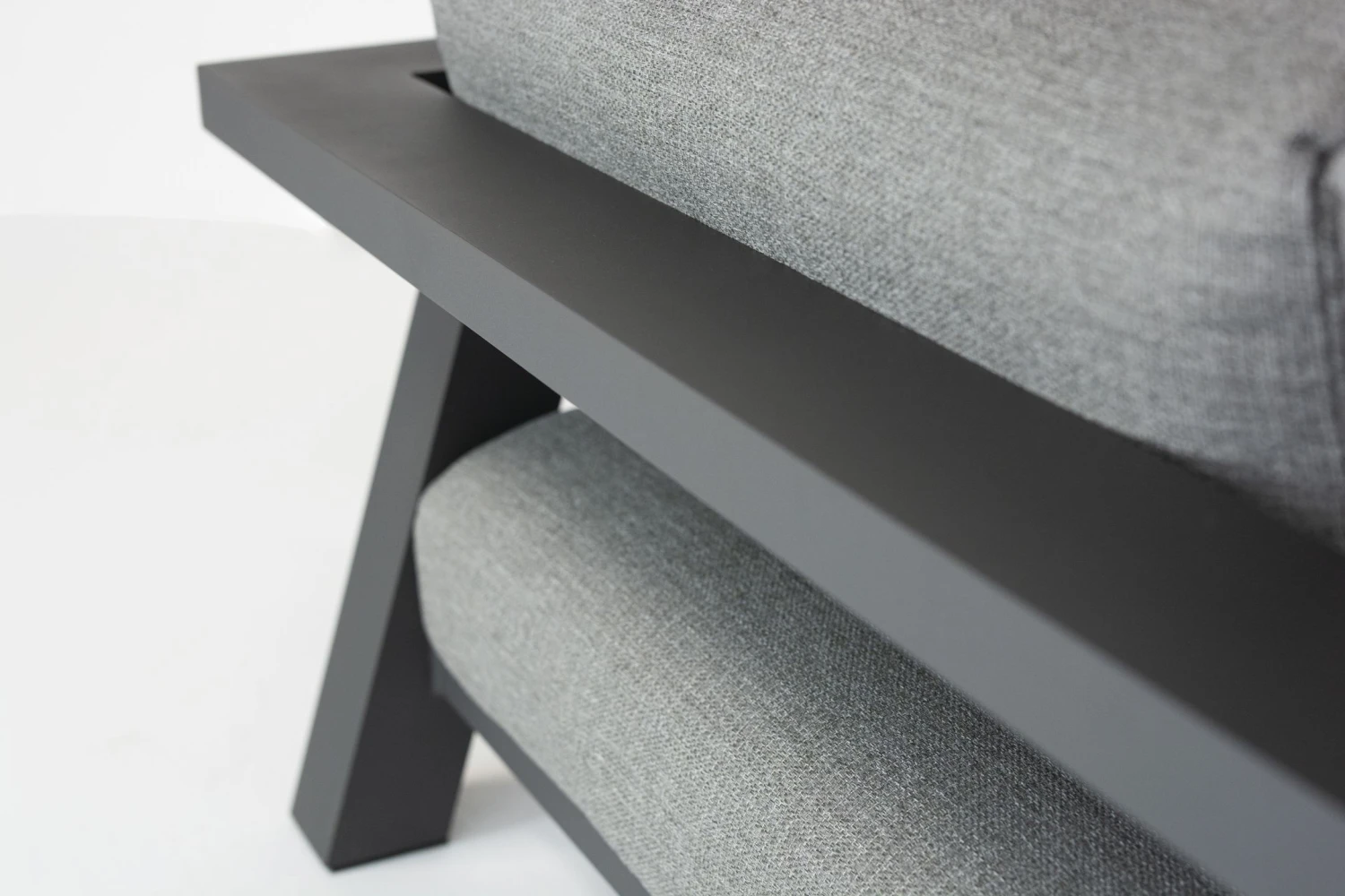 Tuinbank Iclyn gemaakt uit aluminium in het antraciet met grijze kussens uit Olefin.Â
