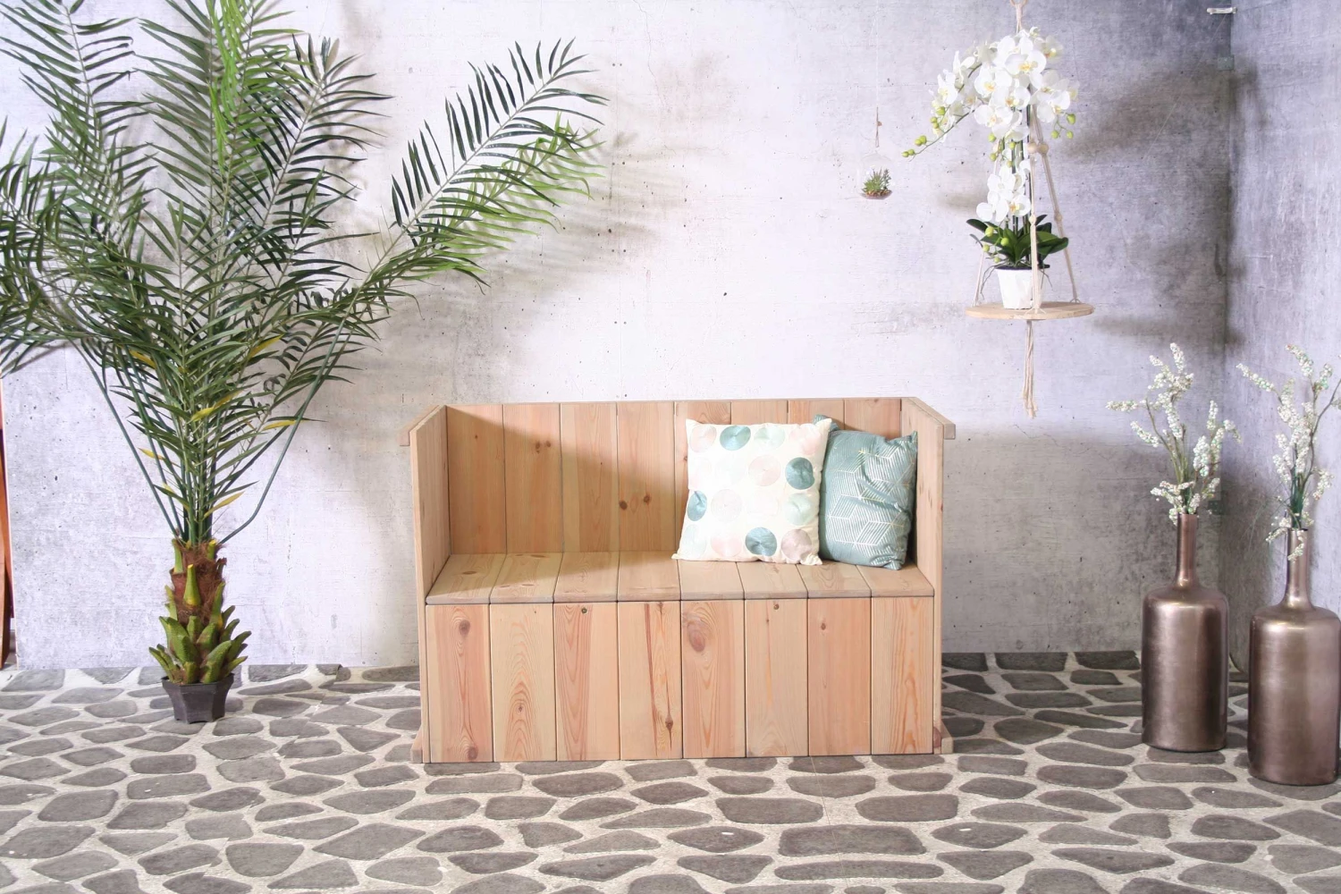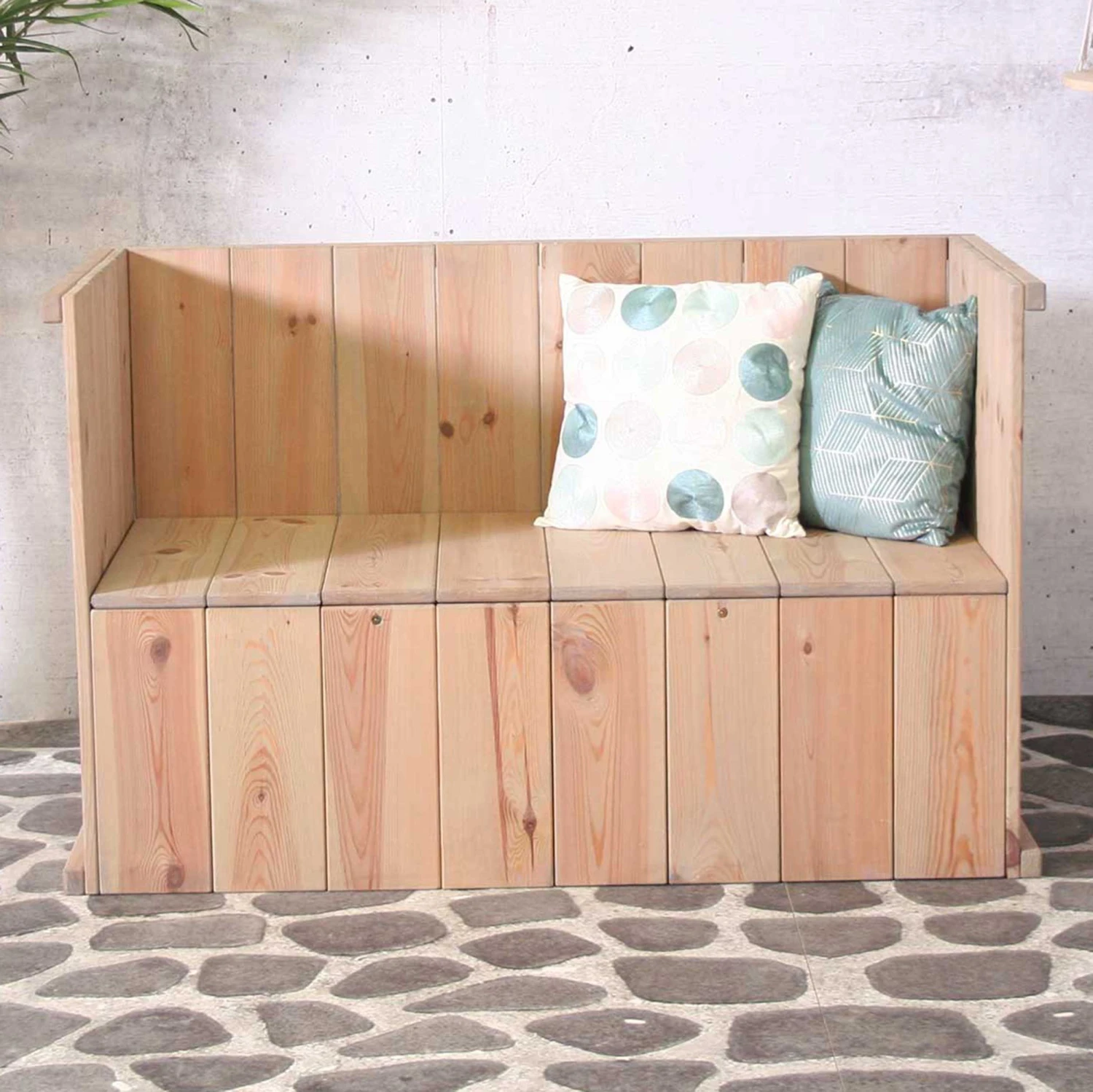 Onderhoud: behandel deze bank een aantal keer per jaar met een beits. Meer informatie hieromtrent vind je in de verpakking van het meubel.