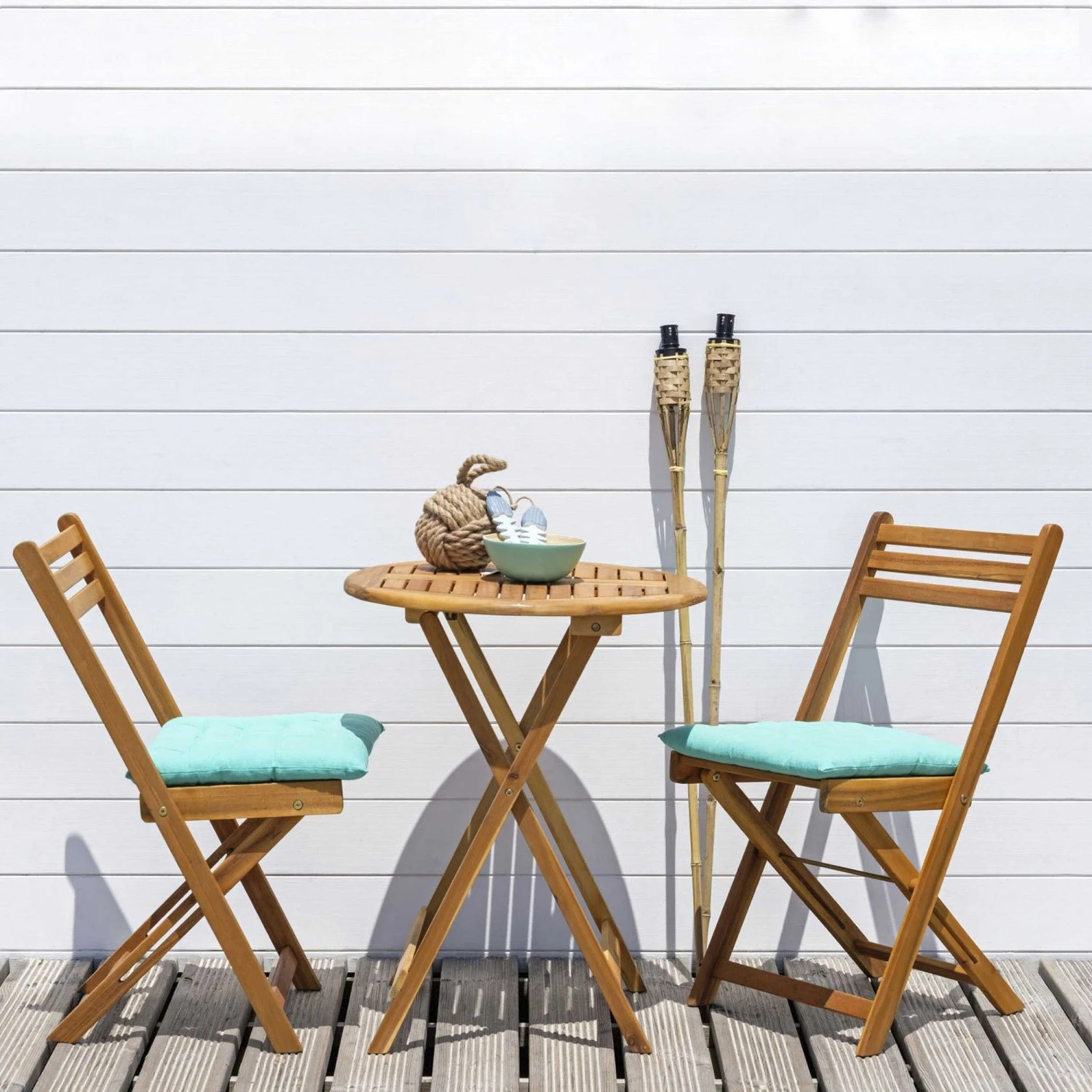 Gezellig buiten aperitieven wordt mogelijk gemaakt door de Boca tuinset. Deze bestaat uit twee stoelen van 52 x 57 x 97 cm en een ronde tafel met diameter 60 cm en hoogte 74 cm, volledig gerealiseerd uit acaciahout. Daarom is het geheel makkelijk in onderhoud en kan het altijd buiten blijven staan. De set wordt geleverd zonder kussens.Â