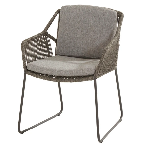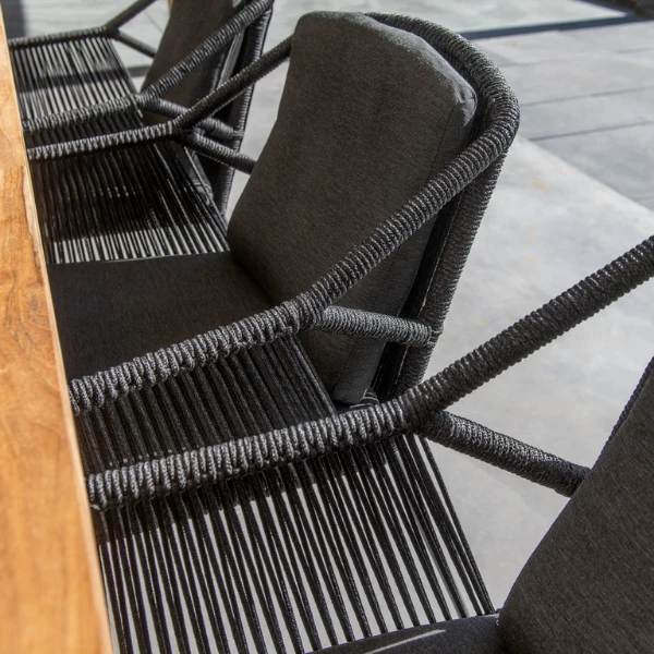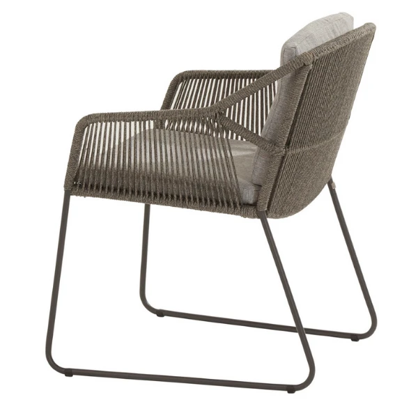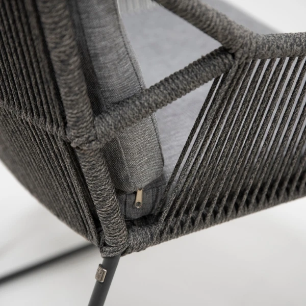 Tuinstoel Accio in roestvrij staal afgewerkt met polypropyleentouw. Met kussens in olefin. De stoelen worden per 2 verkocht.Â