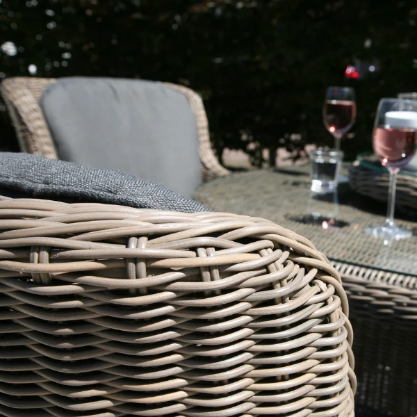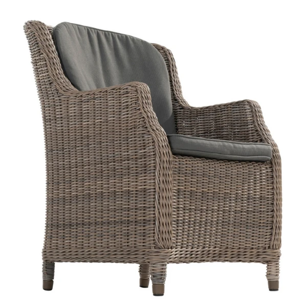 Tuinstoel Brighton Pure uit Hularu wicker. Met grijze kussens.Â