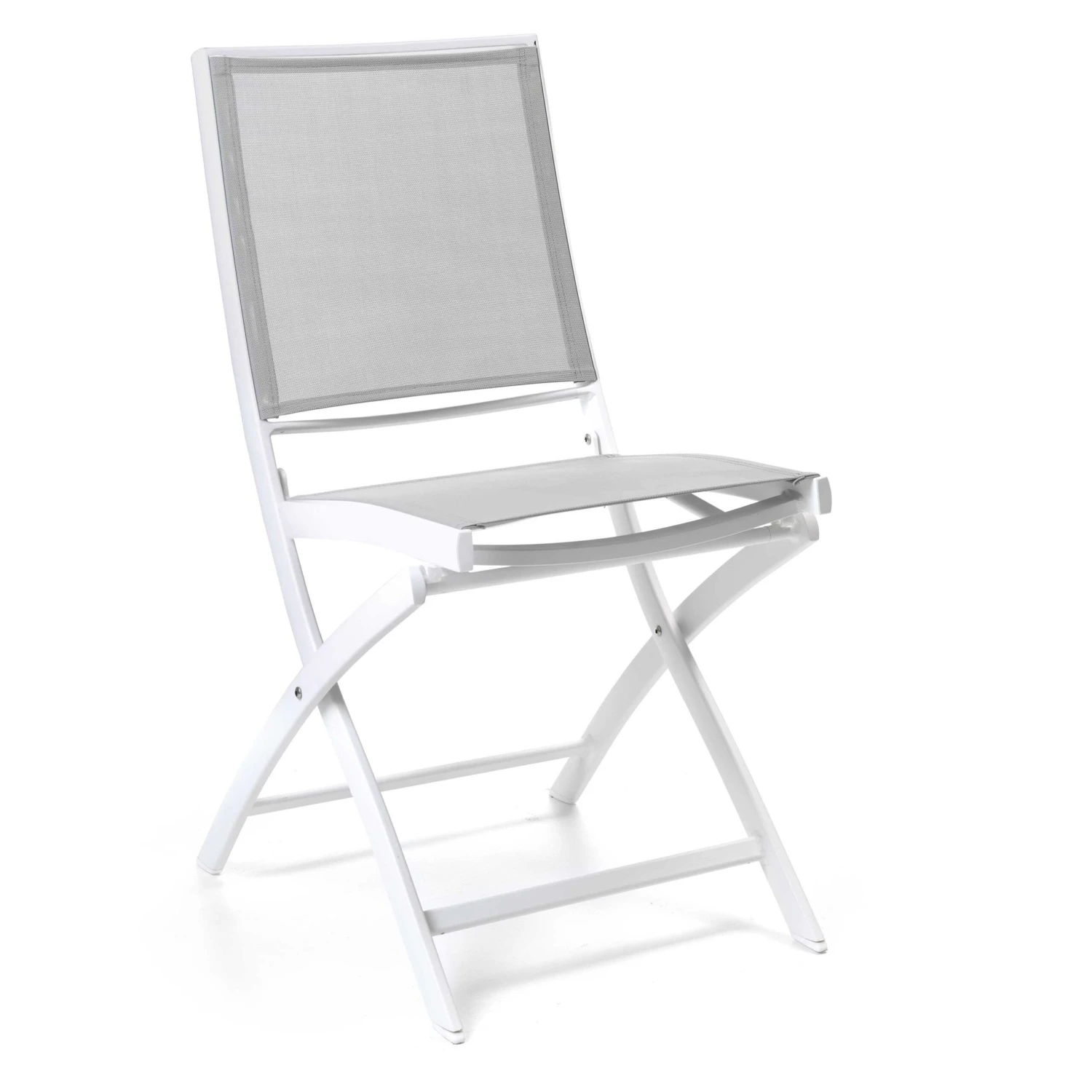 De Carrie tuinstoel is vervaardigd uit mat wit aluminium. De rugleuning en zitting van de stoel zijn in lichtgrijs textileen, een weerbestendig materiaal. Handig: de stoel kan eenvoudig dichtgeklapt worden.