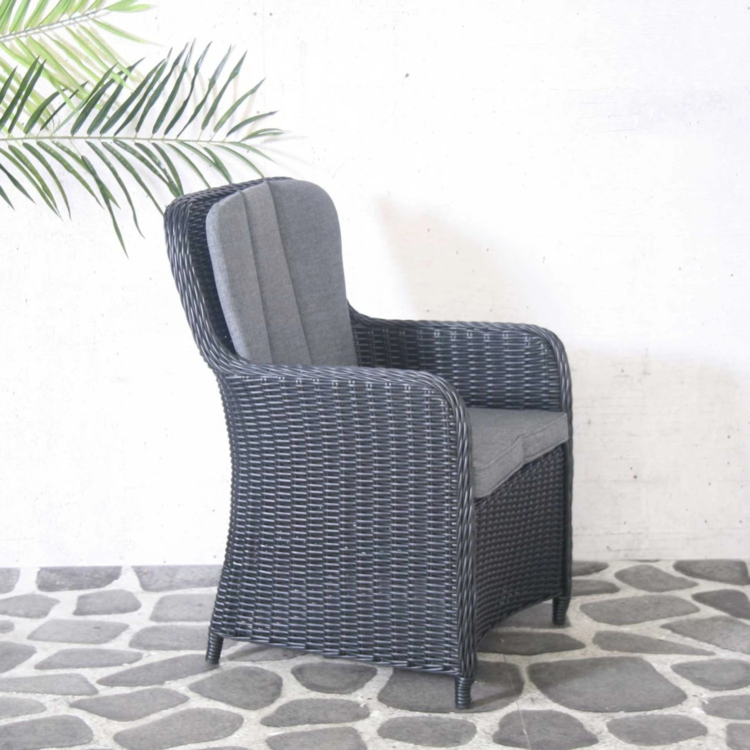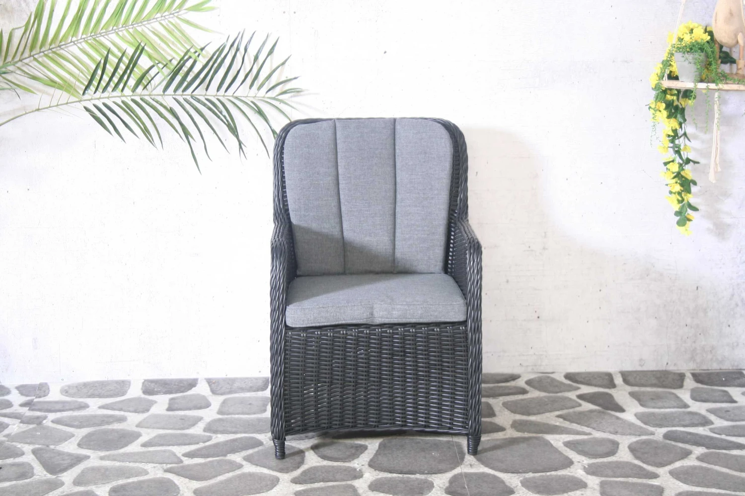 Creëer ook buitenshuis een gezellige, huiselijke sfeer met deze Connor-stoel in zwart. De comfortabele tuinstoel Connor is voorzien van een aluminium frame en weersbestendige wickerbekleding. Het meubel is uitgerust met comfortabele, waterresistente zitkussens in polyester. Ook beschikbaar in bruin en grijs. Kijk zeker ook eens op onze webshop, waar u ongetwijfeld een bijpassende eettafel kan vinden!Â