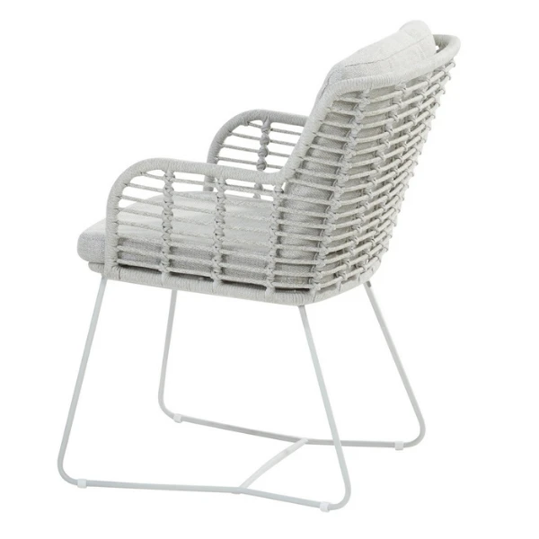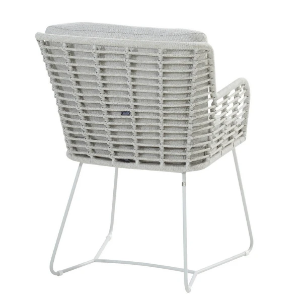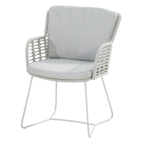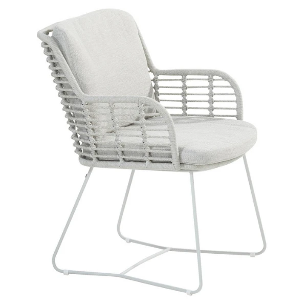 Tuinstoel Fabrizio uit roestvrij staal afgewerkt met polypropyleentouw. Met kussens in olefin. De stoelen worden verkocht per 2.Â