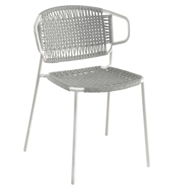 Maak je tuinset compleet met deze tuinstoel Filippo uit roestvrij staal. De geweven zitting en rugleuning geven de stoel een bijzondere uitstraling. De stoel bestaat uit een wit roestvrijstalen frame afgewerkt met grijs touw. De zitting en de brede, gebogen rugleuning zorgen voor extra zitcomfort. Ideaal voor lange barbecues en tuinfeesten. De stoelen zijn bovendien ook stapelbaar. Zo nemen ze niet veel plaats in als ze na de zomer opgeborgen moeten worden.Â