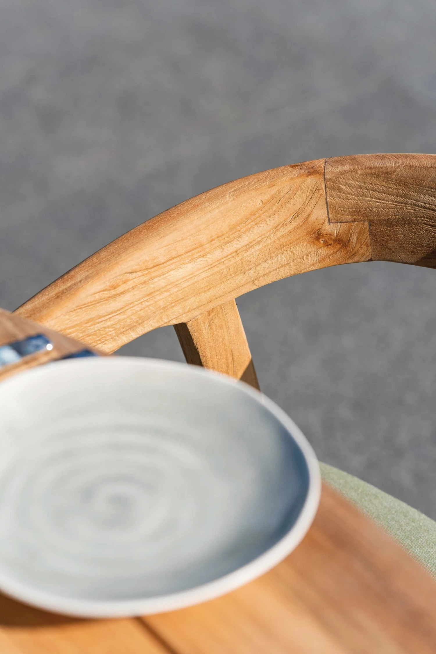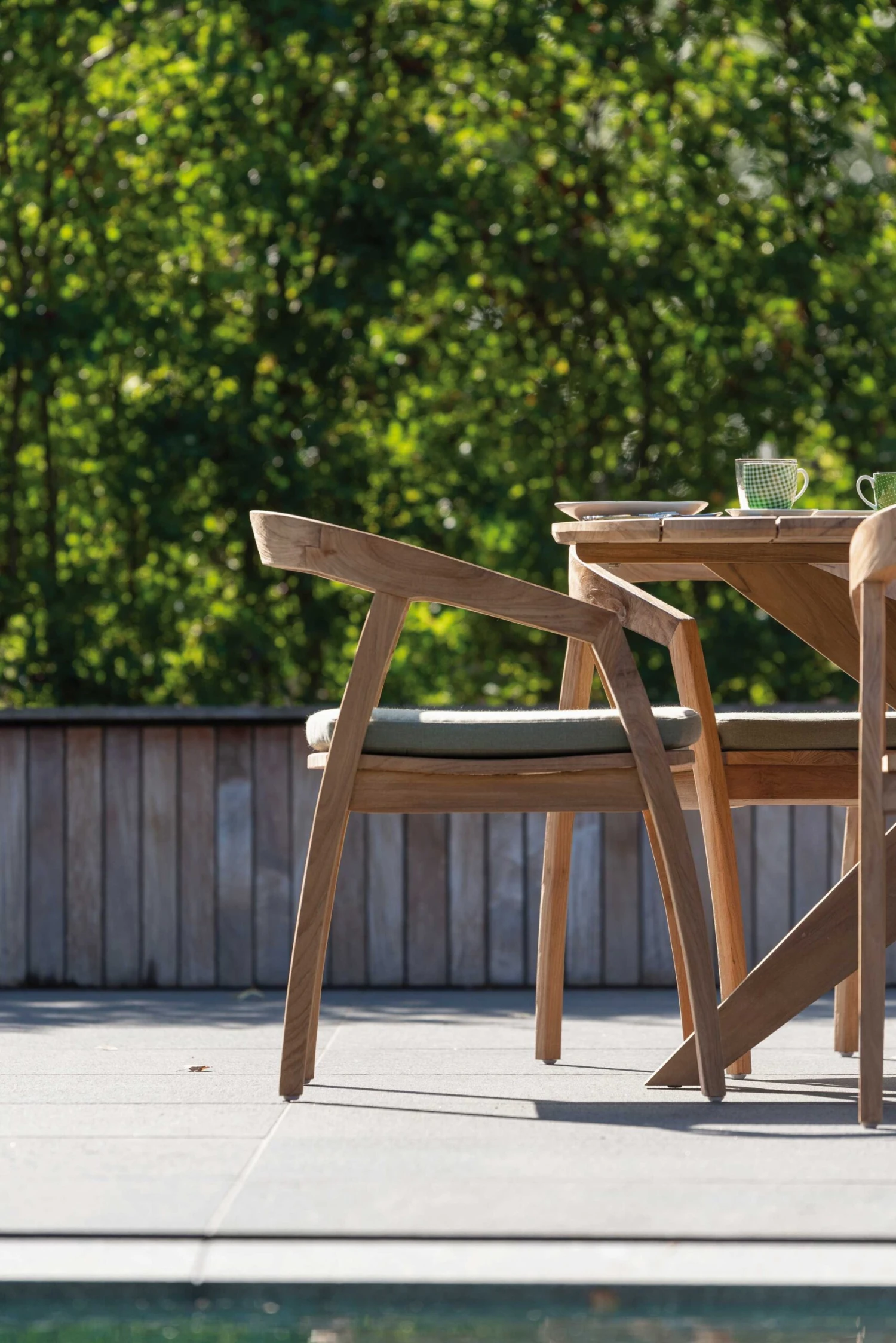 Natuurlijke tuinstoel Makassar vervaardigd uit teak. Zitkussen inbegrepen.