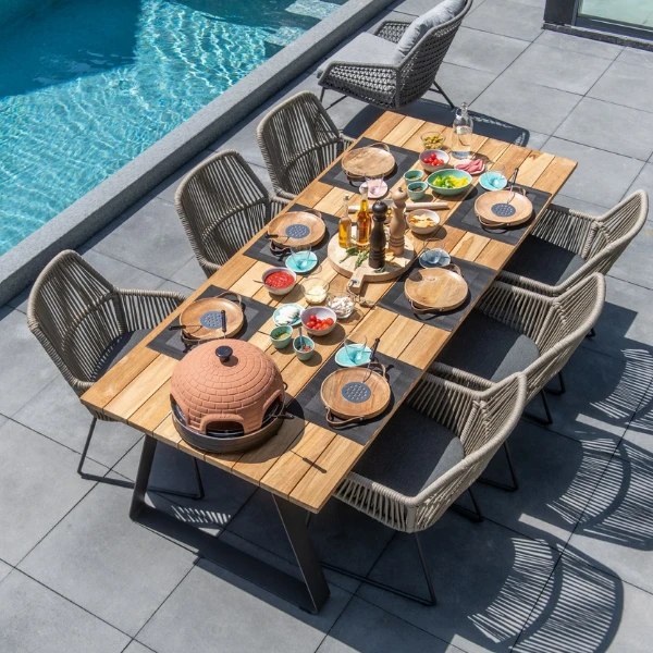 Tuinstoel Mambo uit roestvrij staal afgewerkt met polypropyleentouw. Met een zitkussen in olefin. De stoelen worden per 2 verkocht.Â