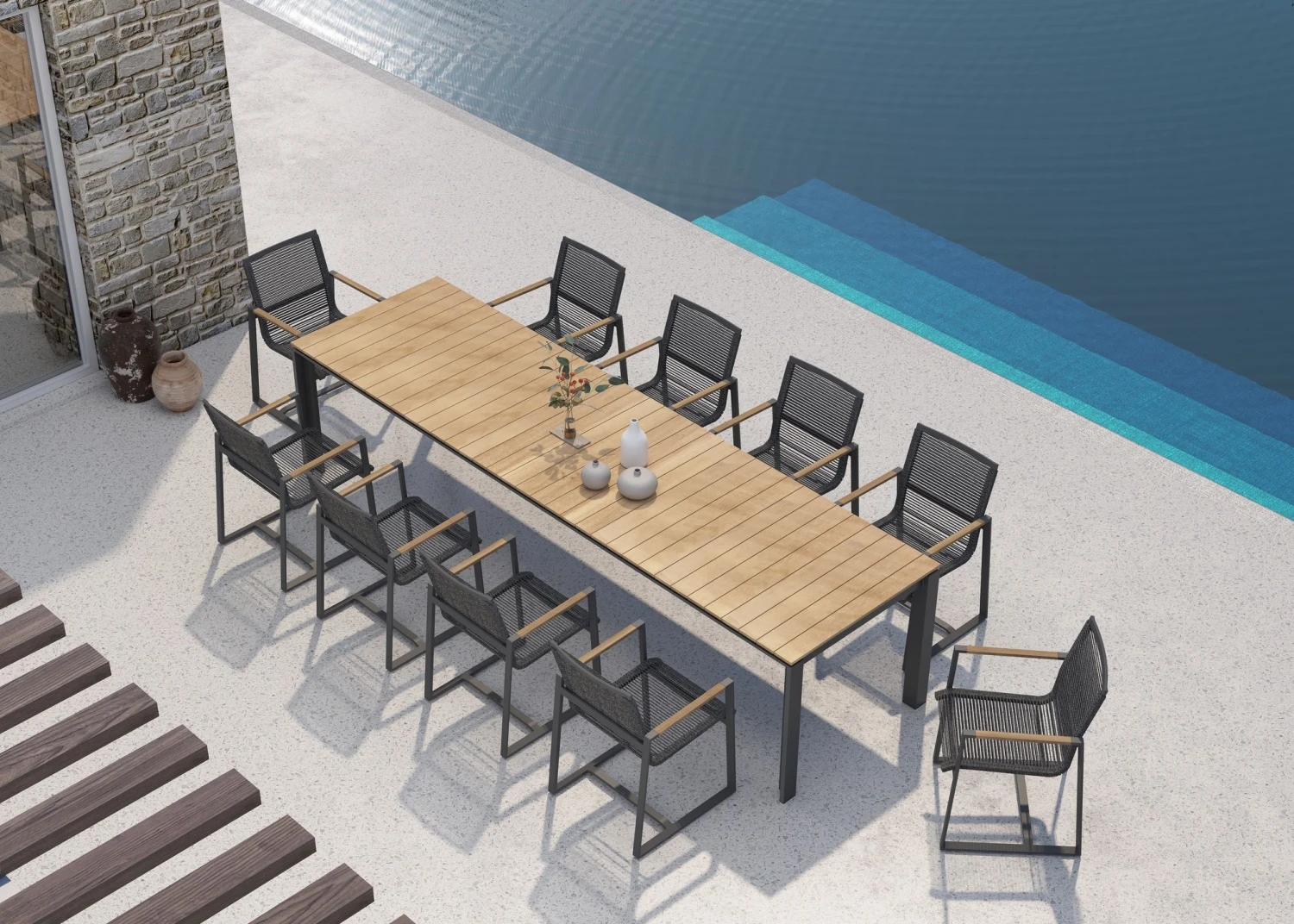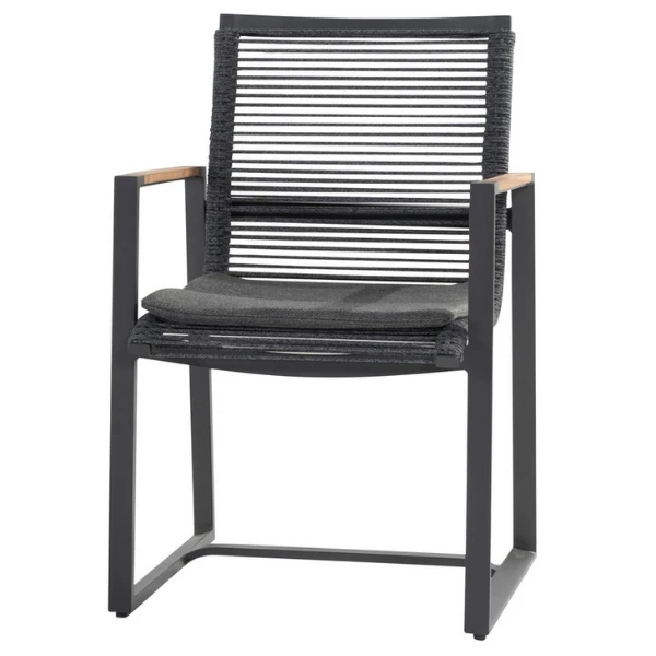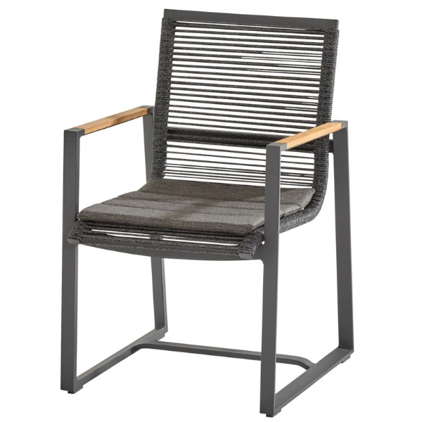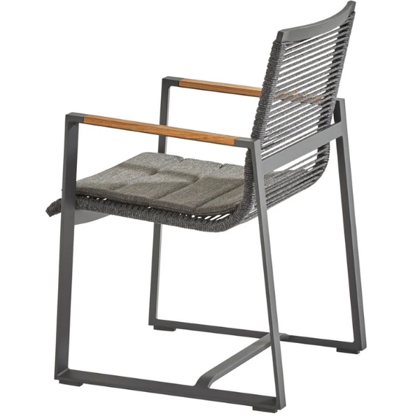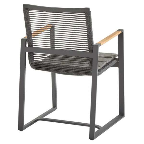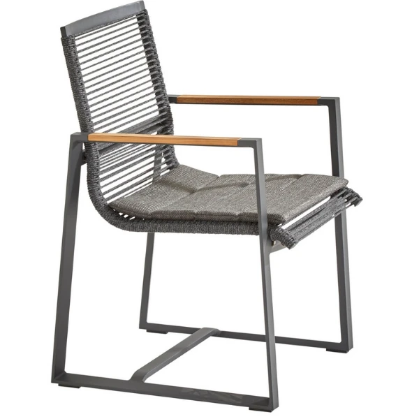 Eenvoudig maar toch stevig, daarvoor staat deze Pando tuinstoel. Het frame is gemaakt uit aluminium, een zeer geschikt materiaal voor buiten. De comfortabele zitting en rugleuning zijn gemaakt uit touw. Je kan erop rekenen dat deze stoel gemakkelijk zit, want het touw past zich aan jouw lichaam aan. Afgewerkt met teakhout aan de armleuning, is deze stoel een elegante touch voor aan je tuintafel.Â