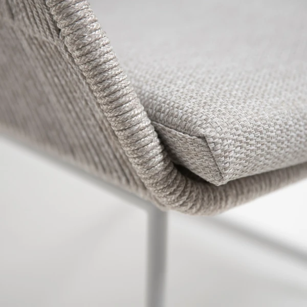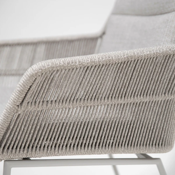 Tuinstoel uit aluminium, afgewerkt met polypropyleentouw. Met kussens in olefin. De stoelen worden verkocht per 2.Â