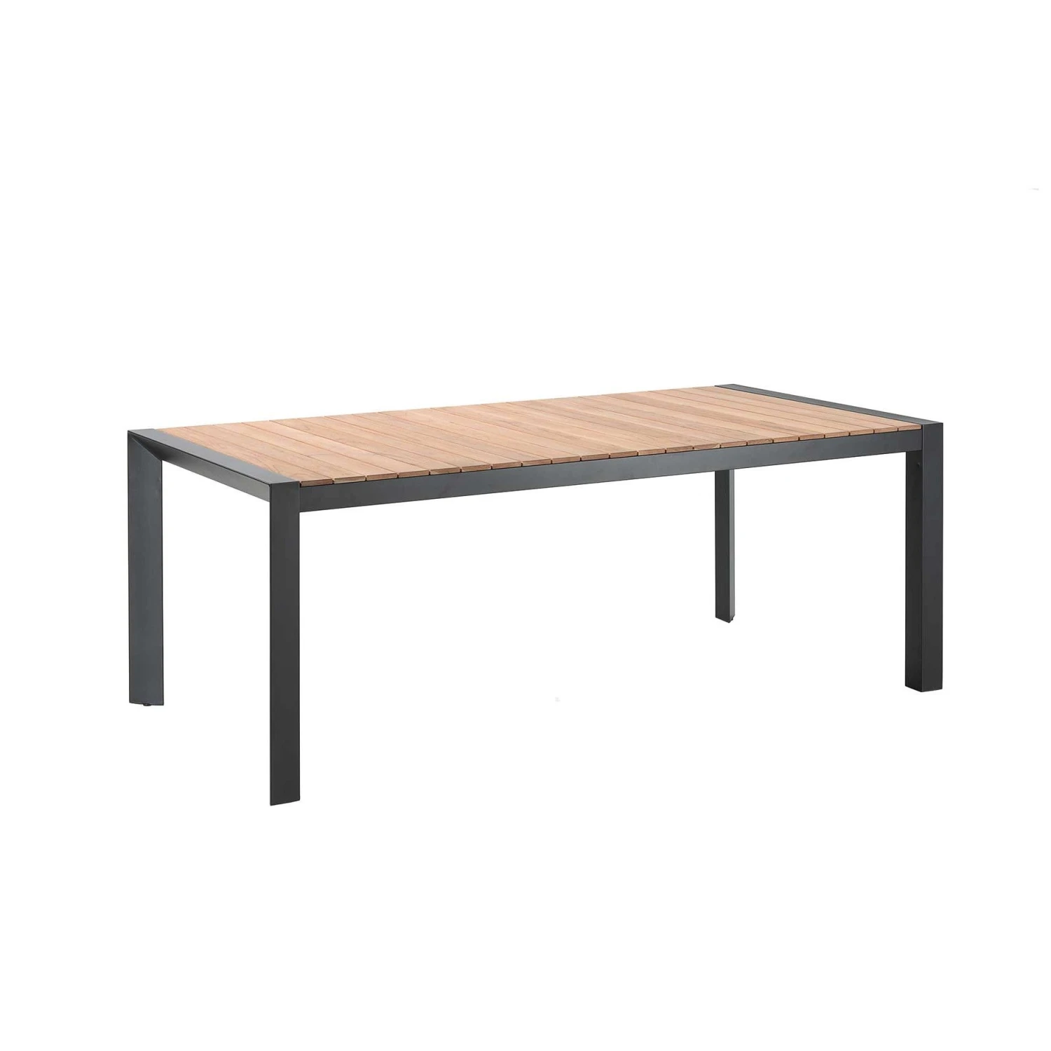 Tuintafel August uit zwart aluminium met een teakhouten blad. Afmetingen: 202 x 100 cm