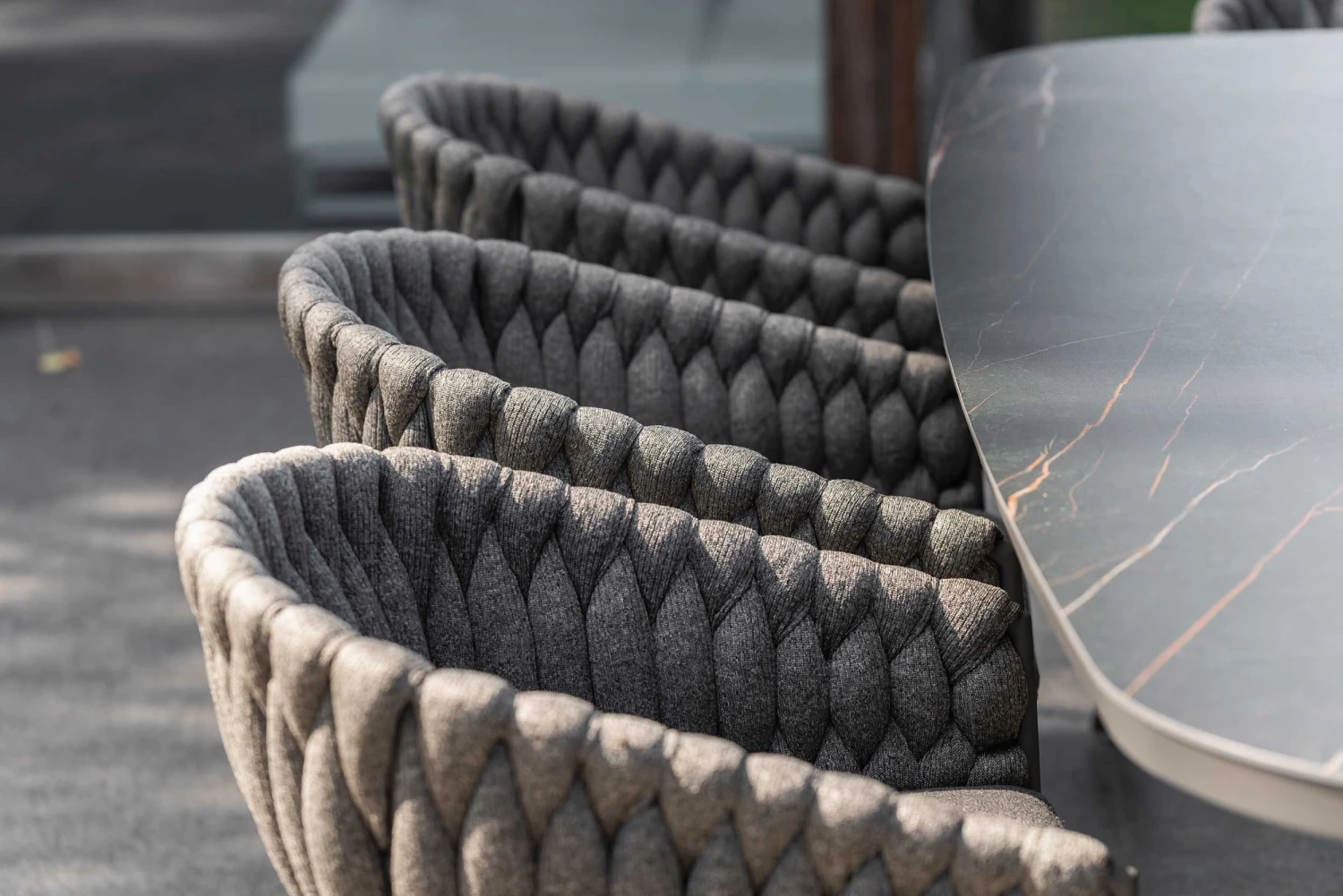 Op zoek naar een unieke en ruime tuintafel voor je terras? De Ghana tuintafel van het Belgische merk Gescova heeft een prachtig zwart keramisch blad dat je meteen zal weten te bekoren! Het frame van de tafel is vervaardigd uit donkerkleurig aluminium. Deze ovale tafel heeft volgende afmetingen: L 260 x B 120 x H 75 cm