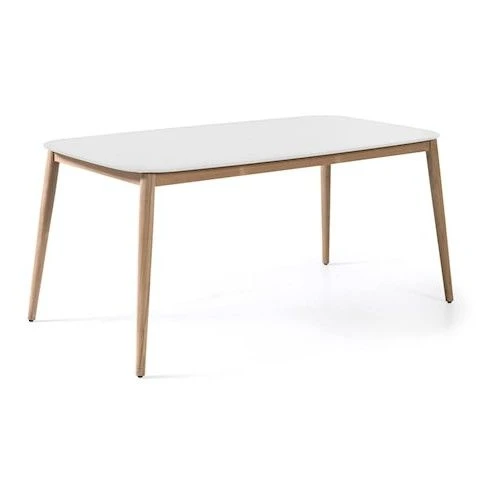 Hij is vervaardigd in Duranite, Gescova’s oplossing voor een duurzaam en kwaliteitsvol tafelblad. Duranite is een materiaal gemaakt van vezelcementplaat en afgewerkt met meerdere lagen polymeerverf. Het voordeel ervan is dat het tegen alle weersomstandigheden bestemd is. De tafel is dus zeer makkelijk te onderhouden! De tafelpoten zijn gemaakt van massief teakhout.