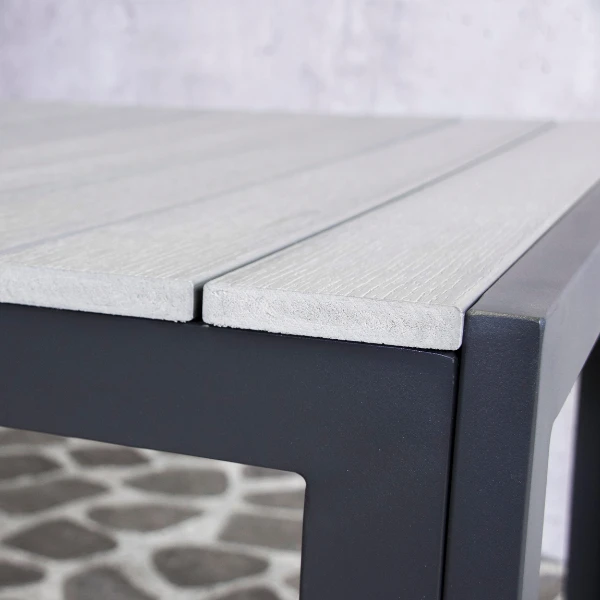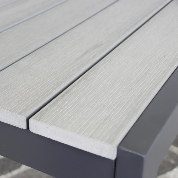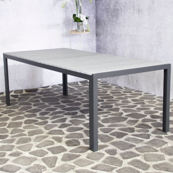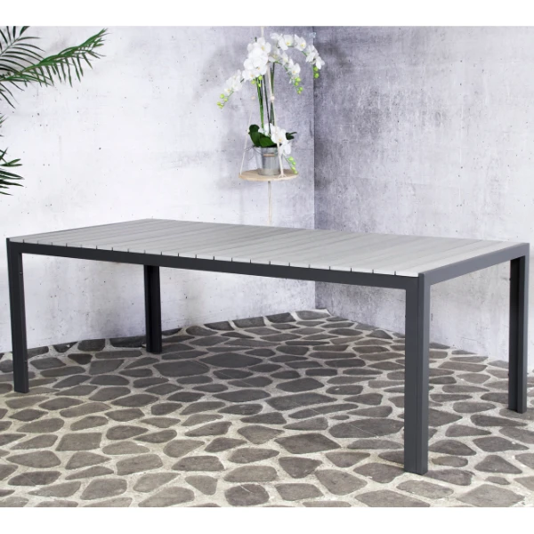 Aluminium tuintafel Jersey met grijs tafelblad van polywood, 220×100 cm.