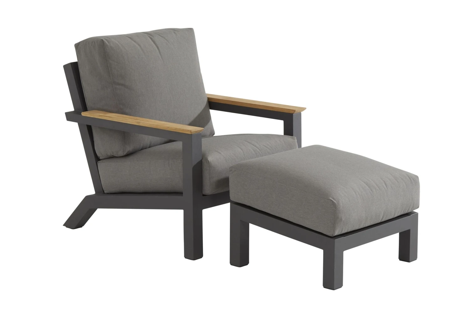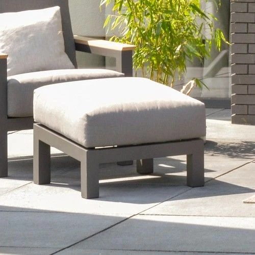 Het voetenbankje dat hoort bij de Acilo loungeset heeft een frame in donkergrijs aluminium. Ook het kussen afgewerkt met olefindraad kan perfect verschillende weerstomstandigheden doorstaan en droogt snel.Â