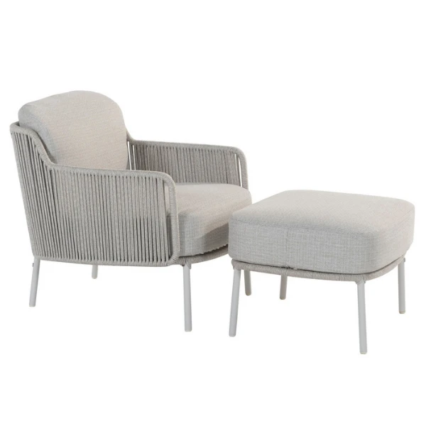 Voetbankje voor bij loungeset Bernard uit rvs met een kussen in olefin.Â