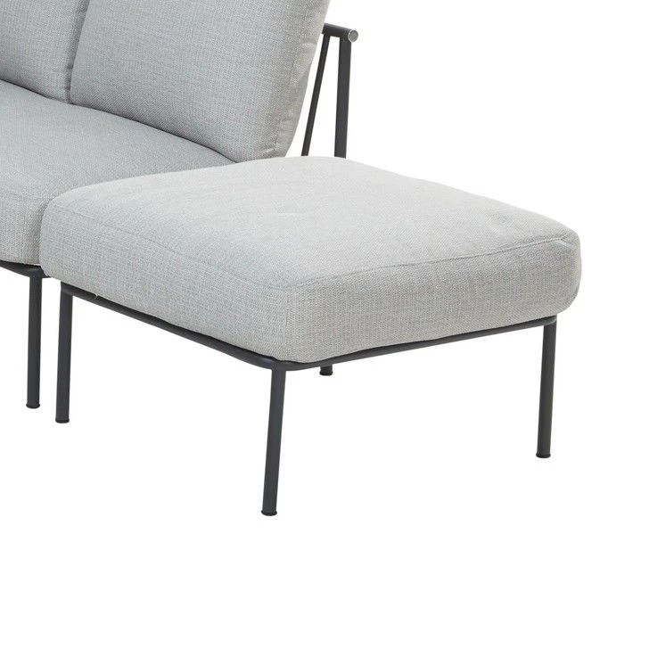Voetbankje Figo uit aluminium en met grijs kussen afgewerkt met olefindraad.Â