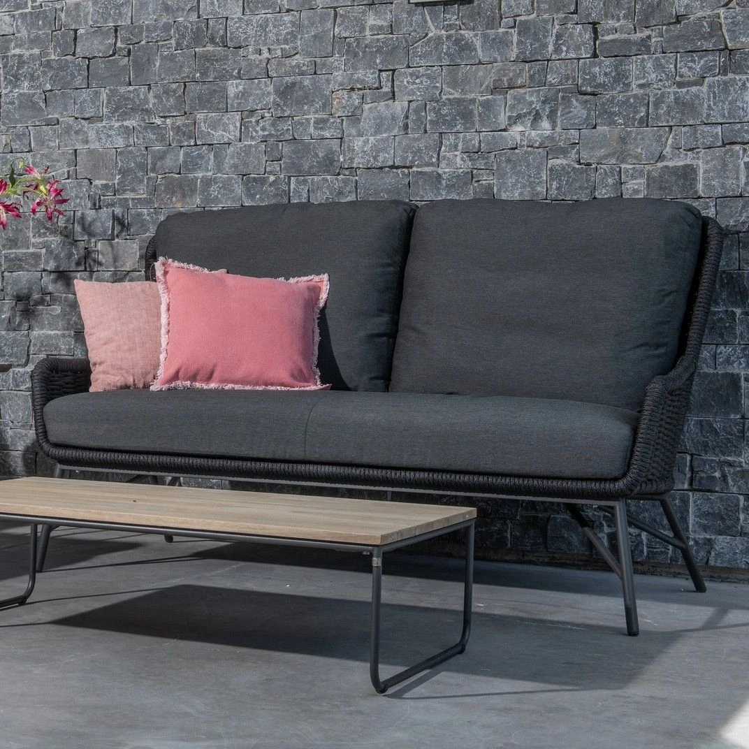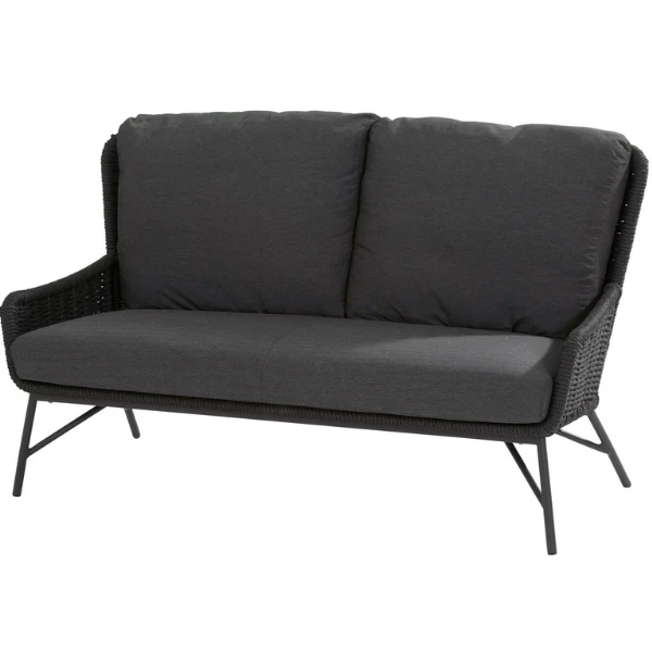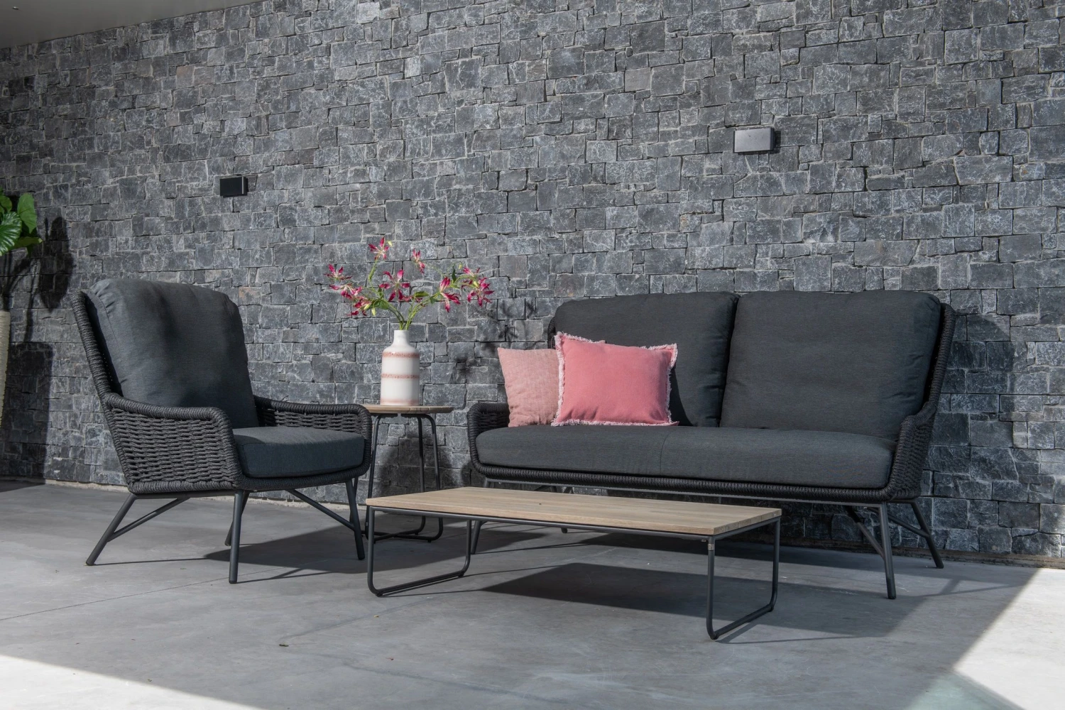 Met deze zitbank kan je tot rust komen en genieten van de warme zon in je tuin. Deze zitbank is gemaakt uit donker aluminium en touw met kussens uit Olefin. Deze zitbank heeft een klassiek design maar kan ook perfect met moderne meubels gecombineerd worden.